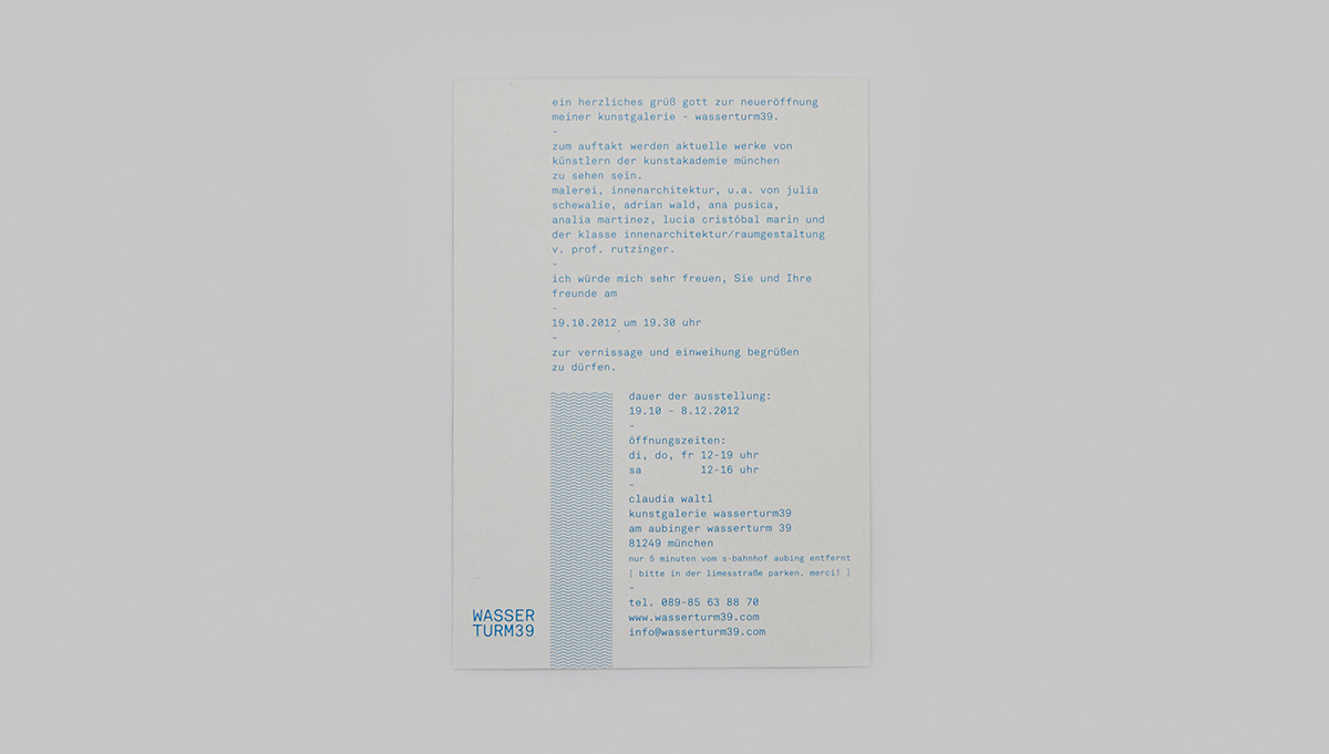 Corporate Identity for the Art Gallery Wasserturm39 in Munich